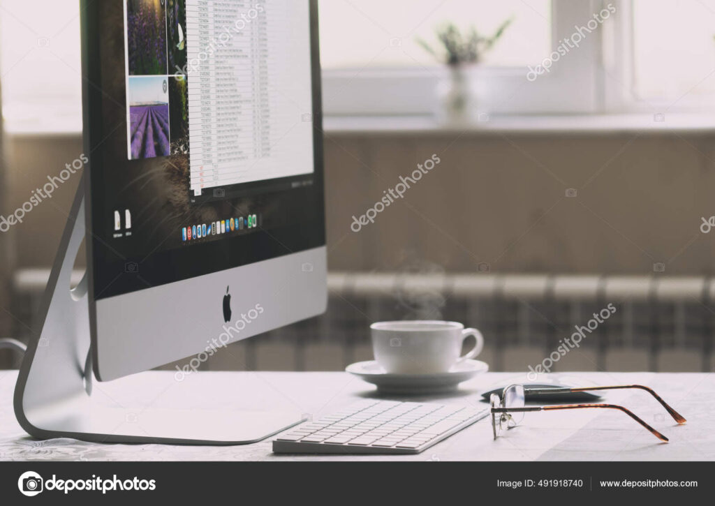 iMac computer and glasses on the table